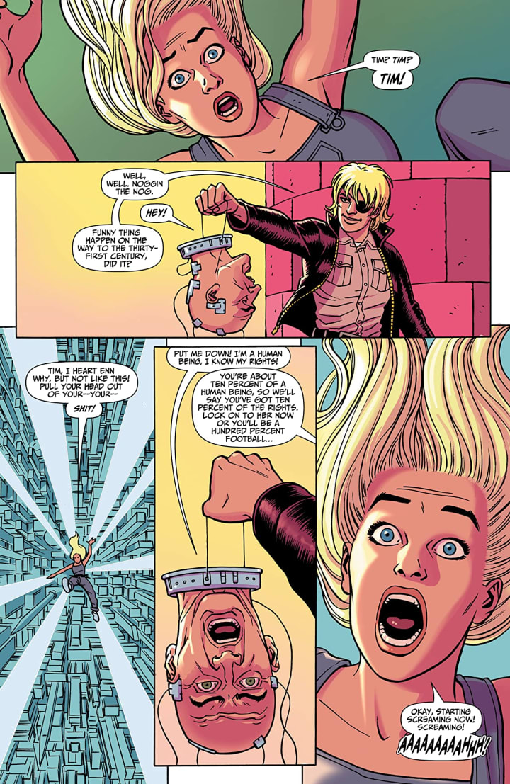 Oh, all right then: all Marj wants to do is race up and down the time-lanes, stealing every shiny-gleamy-pretty-sparkly she can lay her hands on. But her larcenous trail from the Big Bang to the Ninety-fifth Reich has drawn the beady eye of the Temporal PD, whose number one Deputy Marshall is now hard on our heroine's tail-- and taking things extremely personally. Worse still, Marj's worthless creep of an ex and his even scummier partner have seen an angle of their own in all this, and now intend to use her time-tech to change history for their own benefit. Marj's only ally? A guy called Tim. And he's just a head.