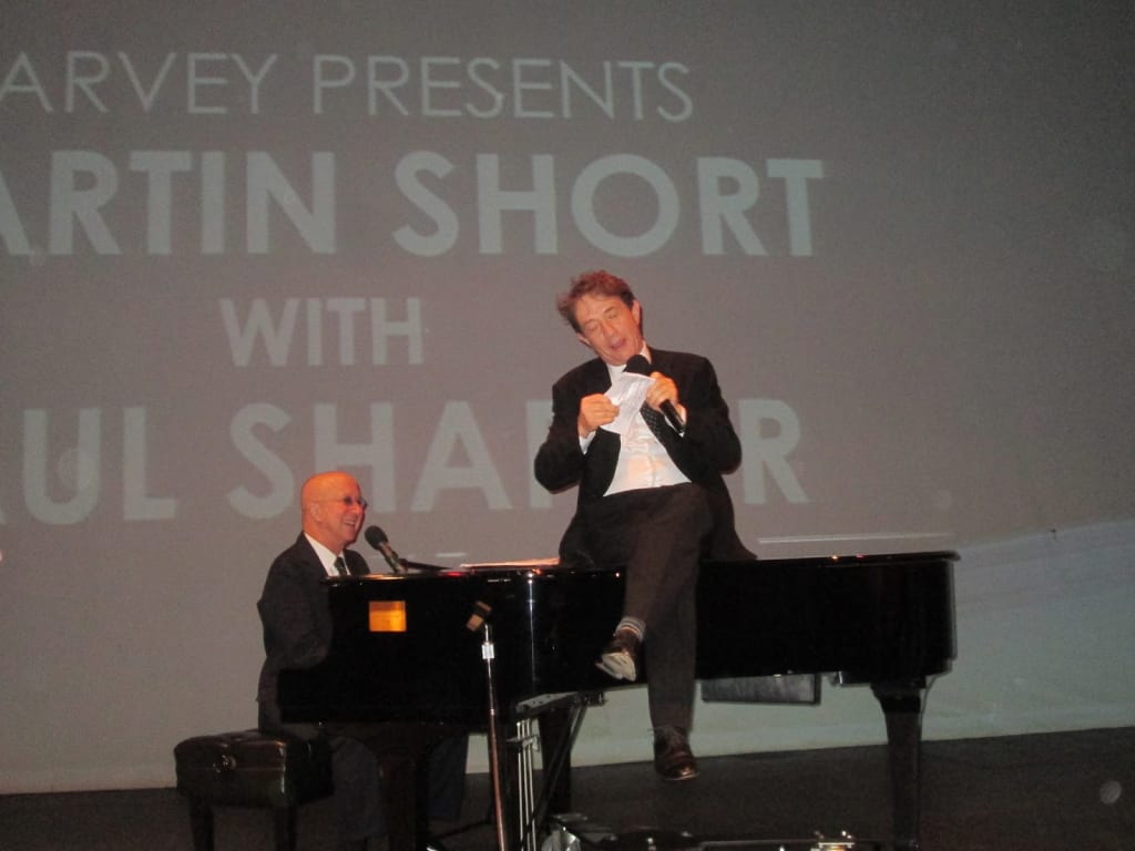 On Friday Night, the Harvey School in Bedford presented the fourth in its series of celebrity Q&As. Paul Shaffer providing the Qs, Martin Short let fly, and the audience didn’t come down until the Canadian born talent ran out of rocket fuel.