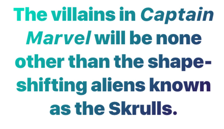 In the comics, Carol Danvers gained superpowers due to being exposed to alien Kree energy. Fittingly, it seems the villains in Captain Marvel will be none other than the shape-shifting aliens known as the Skrulls. The Kree and the Skrulls have been at war for millennia, and Earth has been drawn into their conflicts time and again.