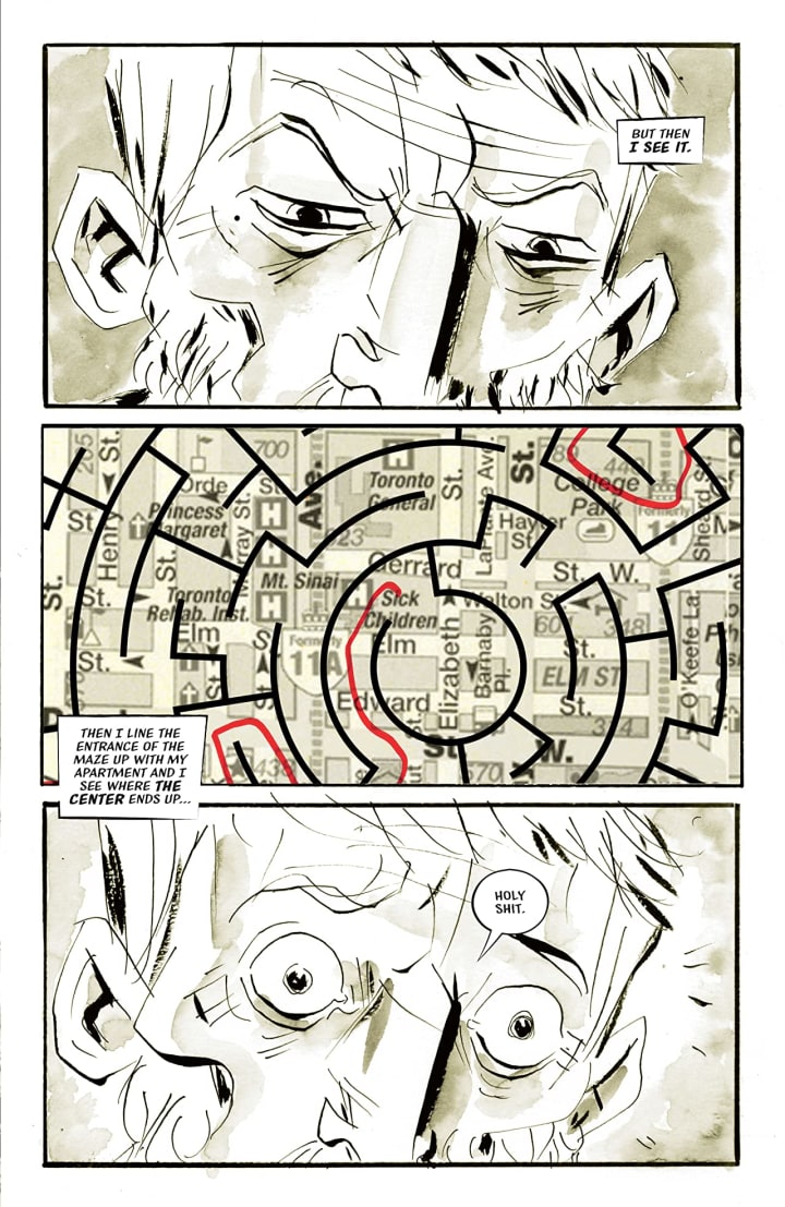 With each issue of this that comes out we fall deeper down the rabbit hole alongside Will and instead of being frightened or uneasy we find some kind of odd solace in this descent into madness. I love that this is so ordinary in how we see Will and his story unfold through his grief and what that does to him, his mind and his sanity. So convinced that he’s on the right path to finding his daughter he’ll stop at nothing to follow the clues and find out what exactly is happening. It is touching, sweet, endearing and yet so full of melancholia and his situation feels lugubrious at best. The empathy that Jeff manages to create between Will and the reader is utterly magnificent and we root for him to be on the right track to be reunited with the daughter whose face he can no longer remember.