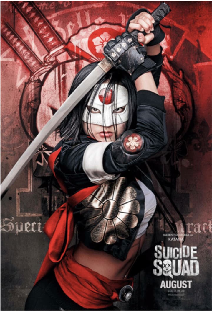 One of my favorite designs, Katana, played by Karen Fukuhara, is actually a superhero who has the awkward task of working alongside the Suicide Squad to keep them in line. Good luck, Katana — you're going to need it.