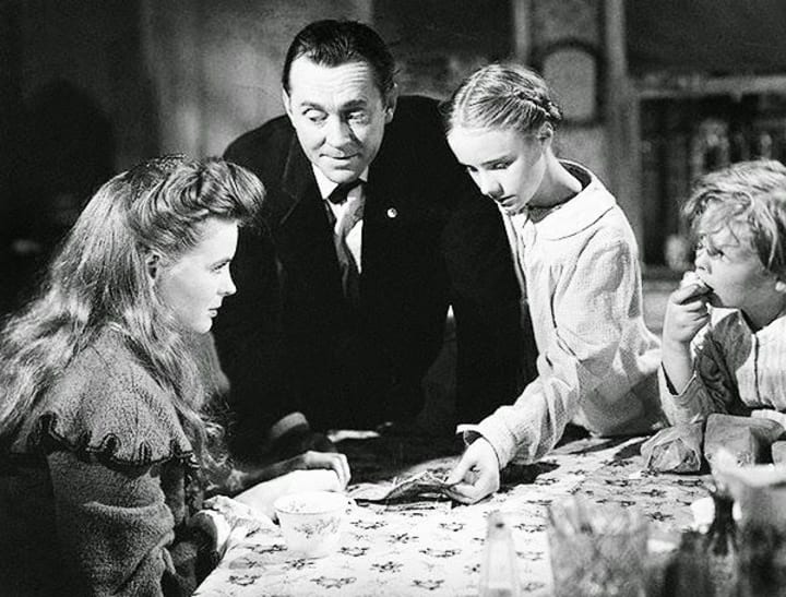 We see the amusing trials and tribulations of the alcoholic Uncle Chris played by Oskar Homolka who has a heart of gold. He gives money to help children who need operations and saves his own sister’s son from having to be lame all his life. A most emotional scene is when Uncle Chris dies from alcoholism and when Mama realizes how he spent all of his money.