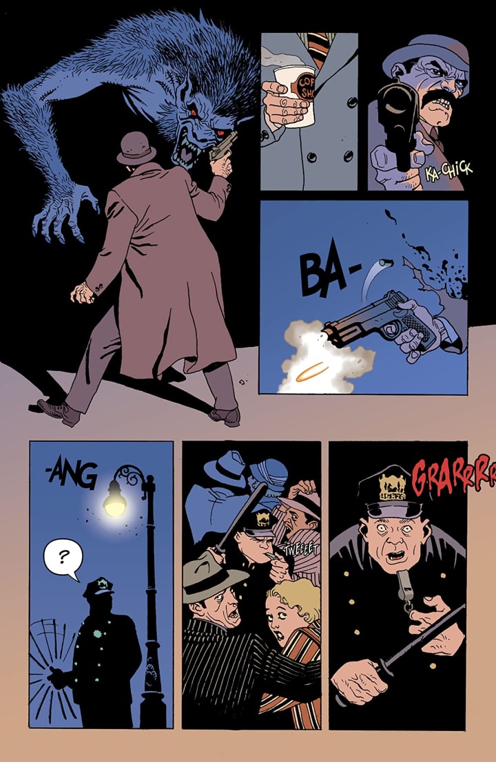 What I love about this series is that it reads like its a soap opera in that you can pick it up at any given time and read this without feeling you’ve missed out on anything or you’ve been left behind, not to mention how much time passes between issues. It’s such a great easy read that is highly entertaining and bloody fun to boot. I love reading this series and how the bootlegging werewolves and the New York Mob are at odds over who is going to sell Moonshine while Prohibition is still on the books. Mind you Prohibition is almost over and soon it’s all going to be moot but in the meantime its about honour and money and of course staying alive. So where does Lou fall into all this, he was sent to negotiate, got turned into a Werewolf and is now pretty much squarely between the two groups.