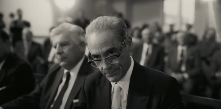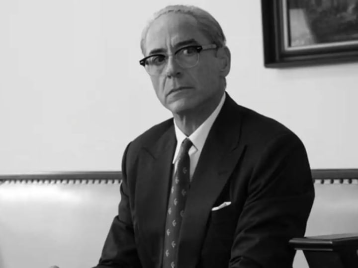 The expansive story of J. Robert Oppenheimer exists in movie form in three separate threads. In the first thread, Lewis Strauss (Robert Downey Jr) is facing a Congressional hearing over his appointment to a position in President Eisenhower's cabinet. Though a top aid to the President, played by Alden Ehrenreich, assures him that his confirmation as Commerce Secretary is a near guarantee, Strauss is concerned that his past interactions with J. Robert Oppenheimer, a former friend and subordinate, will cost him his position. As this story plays out, there were many twists and turns in the relationship between Oppenheimer and Strauss and that we only remember one of them historically says a lot.