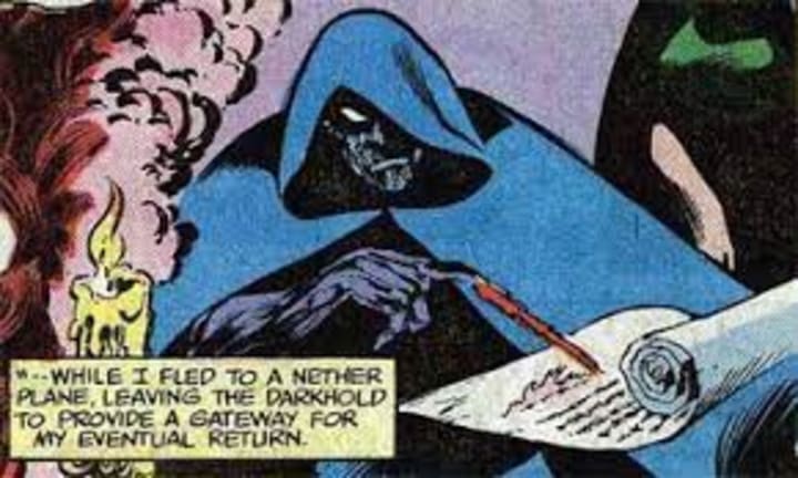 While Chthon himself could not go to Earth, he could send the monsters he created, and his influence continued to grow through the souls that came to him through the Darkhold. During Arthurian times, the Sorceress Morgan Le Fay founded a cult around the Darkhold, and planned a ritual to summon Chthon to Earth under the belief that he would do their bidding. Chthon let them believe this, as being summoned by humans provided a loophole by which he could travel to Earth without violating his agreement with Gaea.