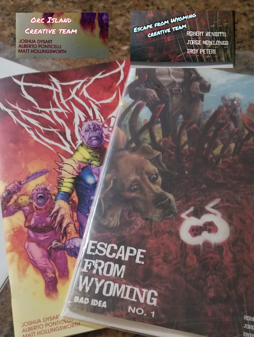 Hey all, Katie here and once again I am talking about Bad Idea(s). How many bad idea puns can I make? Just wait and see (do you think puns are a bad idea?). Anywho, I am here with another Bad Idea comic review. Today I am talking about Escape from Wyoming and Orc Island the two newest Bad Idea comics.