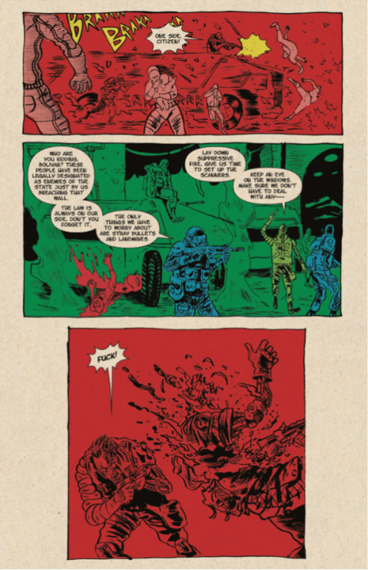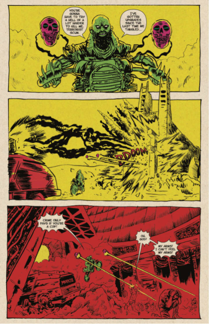 I am really impressed with the way that we see this issue unfold. I’ll be honest I’m going to miss this little book now that this last issue is here. What I think has been pretty amazing through all this is how the Police force is so corrupt thanks to the politicians and government, which is somehow controlled to ensure the cycle of corruption cannot end. To me it sounds like Trump and the Republican party had they been able to stay in office. However in South America this kind of corruption is all too real it’s just the cyber part that hasn’t come true as of yet. If it does hopefully it’s more Bionic Man and less voiceless cyborg. Regardless, how we see this issue play out and the experiment performed by Julian’s brother is rather impressive to me and the fact that this issue also contains violence on a scale i’ve never seen before is both fascinating and horrific at the same time.