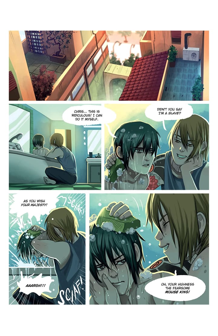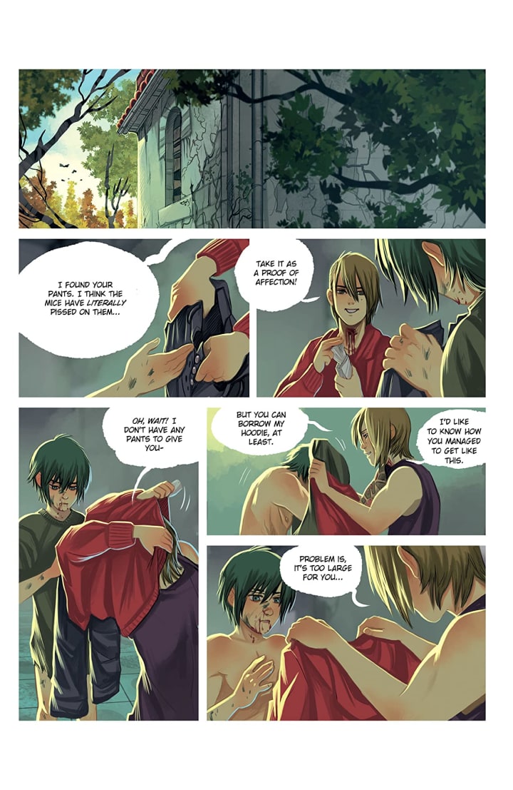 I’m always impressed and in awe of someone who can write and illustrate the entire book. It certainly holds true here because the story is so involved and at times ambiguous to its true nature and yet the way we see every panel of every page exactly as Samuel intends them to be makes for some amazing reading. This love affair we see between the boys has this whole Shakespearean aspect to it in the love and tragedy we see. Damaged characters from different worlds falling in love, it doesn’t get much more romantic actually. With this amazingly complicated writing and intense and complex characterisation alongside these interiors bring to life a modern tragic love story to life.