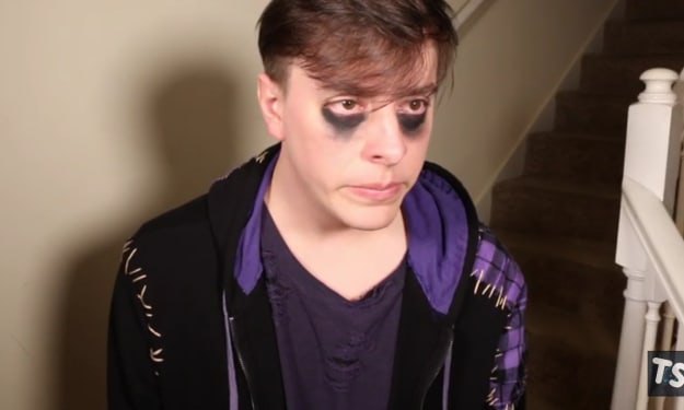 Logan ignored the Disney-related banter that came from the other two who had just walked in and made his way to Patton's room. The door was cracked, so he was able to gently push his way into the room and smelled a metallic stench as he saw a sobbing Patton in bed who was eating what looked like chili. Patton looked at the bowl as he was eating and it took several footsteps before Logan could understand that the meat in the chili was raw.