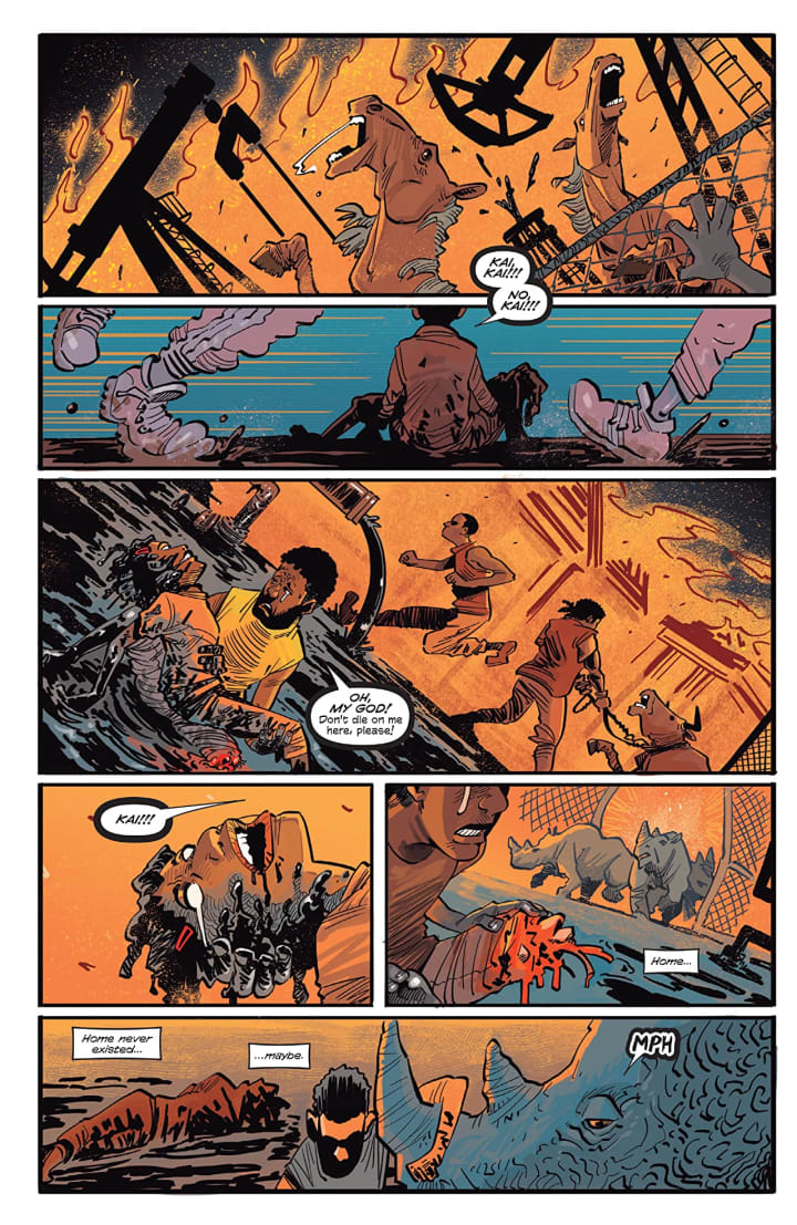 Bakari, a boy dealing with a wretched upbringing, has dedicated his life to protect Sabium, the last albino rhinoceros on planet Earth. Sabium and his breed have been hunted due to their genetic code, which holds the properties to regenerate man. After the events of the first issue, Bakari is immediately thrusted into trouble as he, and Sabium have been found by the hunters.