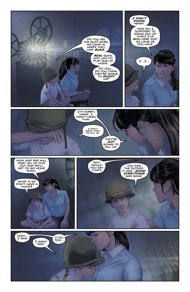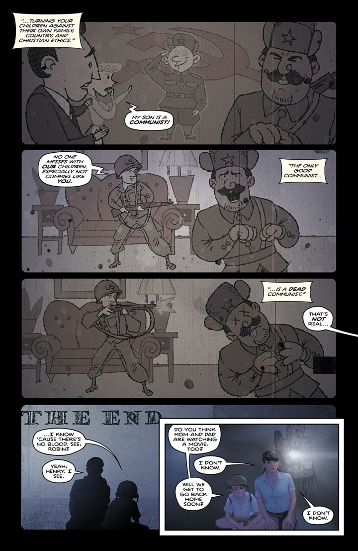 Last issue changed my mind about this story and this issue takes it to the very next level for me. Especially with how it ends because that ending blew me away like no one’s business. Part of me wonders why they are so hellbent on calling the McCleans communists instead of trying to figure out what the heck is going on the other part of me figures it is the U.S. Government so naturally they act like idiots. Stereotype or plain reality either way you look at it it does seem that the government is the bad guy in most every situation.