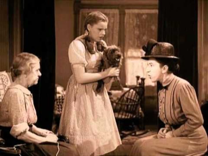 Dorothy's Auntie Em played by Clara Blandick could not help her save Toto from the clutches of their neighbor Miss Gulch who later appeared as the Wicked Witch of the West portrayed by the actress Margaret Hamilton.