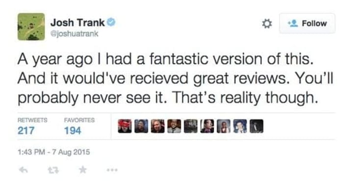 Not long after the film was released, Josh Trank tweeted something rather cryptic: