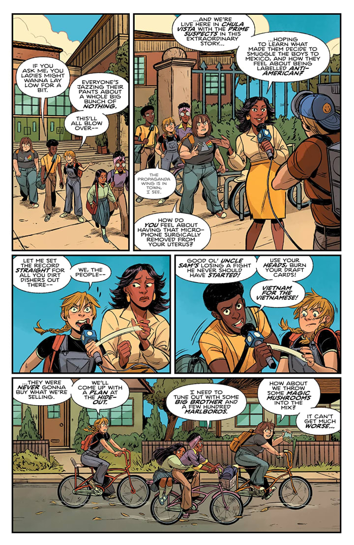 This is a fun little book! The girls are very interesting characters and to see them smoking and trying to be cool amongst themselves while escaping from homes where they feel underappreciated and dare I say cast offs because girls are girls and good for marrying off. That mind you is not my opinion but it is the vibe i get from the story thus far. The opening here is fantastic and if that isn’t some sort of violation of their rights than I don’t know what is. That they were able to keep their cool and not let that sill routine rattle them is impressive.