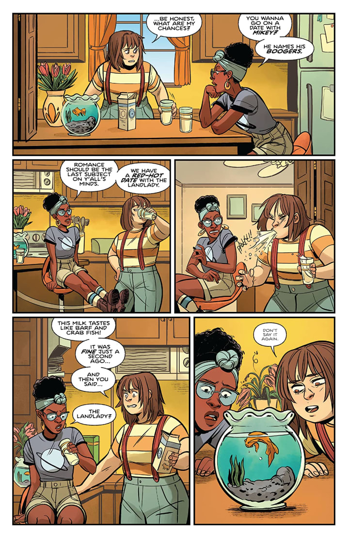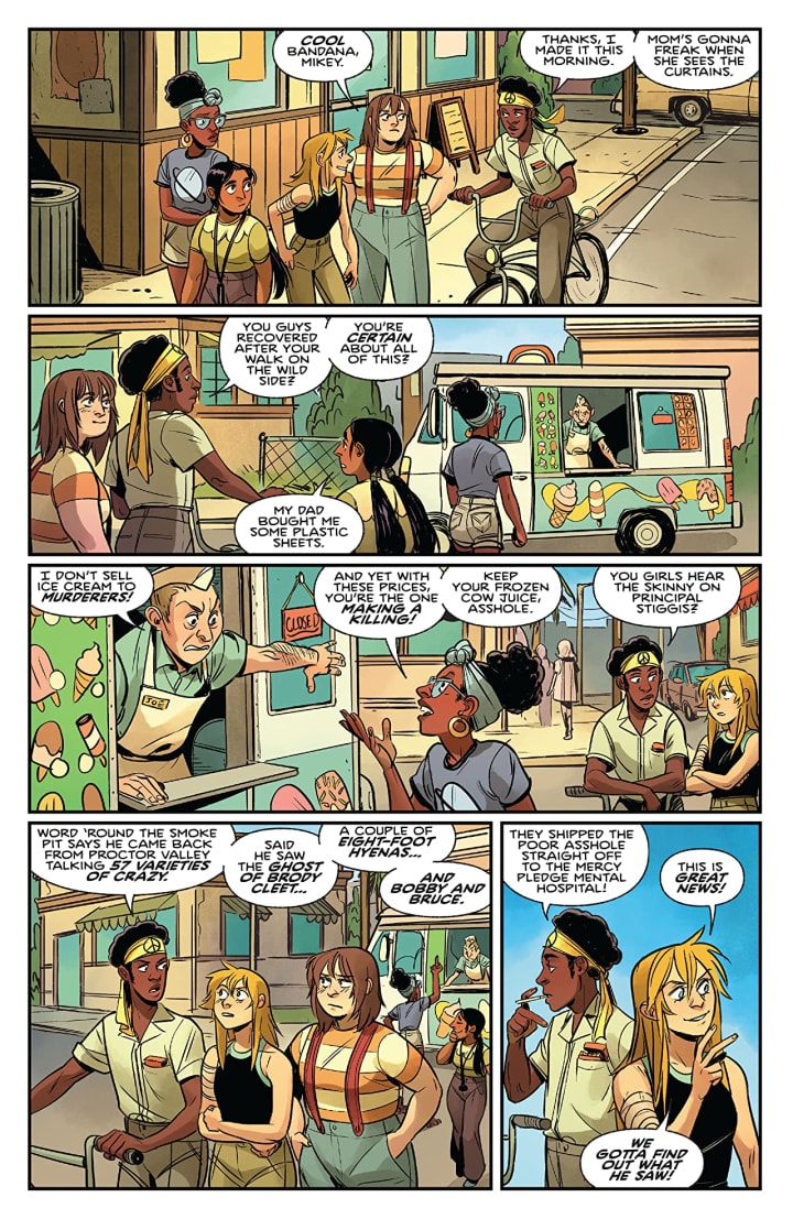 This is just so much fun to read. There are those books that are so incredibly fun to read that you get lost in the story and imagine yourself as part of it and this is one of those. You want to be friends with these girls and you want to see the Landlady but not end up dead or like those prior kids who ended up in the nuthouse. What this creative team has done is create a nearly perfect world filled with interesting characters and a do or die attitude that few in real life posses and that’s amazing to see.