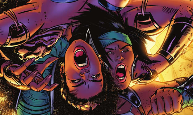 I’m digging the interiors here a whole heck of a lot. The linework is superb and how we see the varying weights and techniques being utilised to create this level & quality of detail within the work is extraordinary to see. We see some nice use of backgrounds here, even if it's imagery instead of simply blank spaces they do wonders in enhancing and expanding the moments. They also work within the composition of the panels to bring out the depth perception, sense of scale and the overall sense of size and scope to the story. The utilisation of the page layouts and how we see the angles and perspective in the panels shows a magnificent eye for storytelling. The various hues and tones within the panels being utilised to create the shading, highlights and shadow work show a sensational eye for how colour works. The pattern in the brick wall or the universe swirl are perfect examples of what I mean.