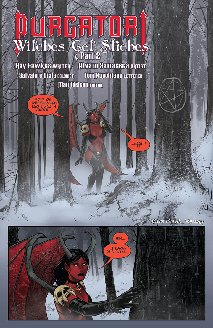 Purgatori! She’s the girl with the great horns and the biggest body count. Now she’s fighting battles inside and out -- monsters trying to kill her in the trackless forests of Europe, and witches trying to take control of her one-track mind. And through it all, one central question nags her over and over – How the hell did she end up in Norway?! She’d better figure things out, or someone’s gonna get gored in the fjord.