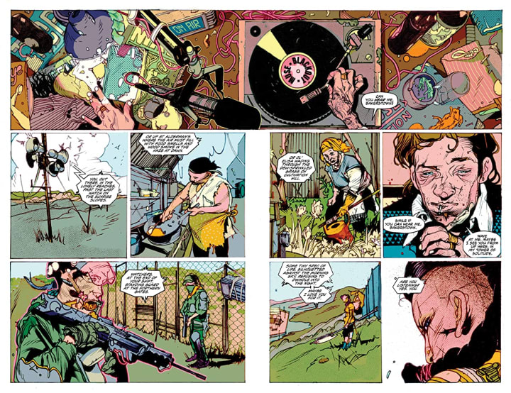 I have no idea what’s really going on other than the surviving folks are having a hard time of it and the settlement of Bakerstown is about to get a large influx of new citizens. This will create a new set of challenges on top of what we are introduced to already and as the story grows I’m sure we’ll have the opportunity to really get to know what’s going on in this world they live in. This has some strong, interesting writing with some intriguing characterisation alongside these really dynamic and impressive interiors.