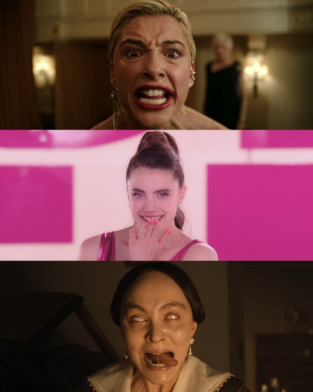 However, in recent years, a decisive shift has occurred. Contemporary horror actors embrace raw, unsettling, and often grotesque performances, prioritizing emotional authenticity over conventional beauty. Films like Smile 2, The Substance, Robert Eggers' Nosferatu, and everything featuring Mia Goth (X, Pearl, Infinity Pool) showcase actresses who fully commit to expressions of fear, disgust, and eerie intensity. This shift enriches the horror genre and has contributed to its massive success in the past decade.