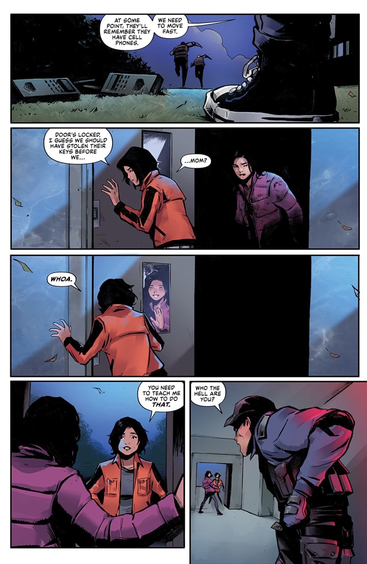 When we left last issue Ms. Owens, Angela, had taken Ricky’s body under false pretenses and then at the dinner table the whole sordid truth came out and off they went to get Ricky back. One of the things that I really like about this is that we’ve been following the story in a kind of real time way instead of jumping around to get to where the characters need to be. Joe’s been able to really blend the story into this crazy thrill ride strewn with some sensational story driven elements. There is action, intrigue and all the things that comes with family and an emotional teenage girl so in some aspects it’s like a timebomb waiting to go off. I am really rather impressed with the skill and talent we see Joe demonstrating with his writing, how he’s able to convey feelings and emotions through words is sensational.