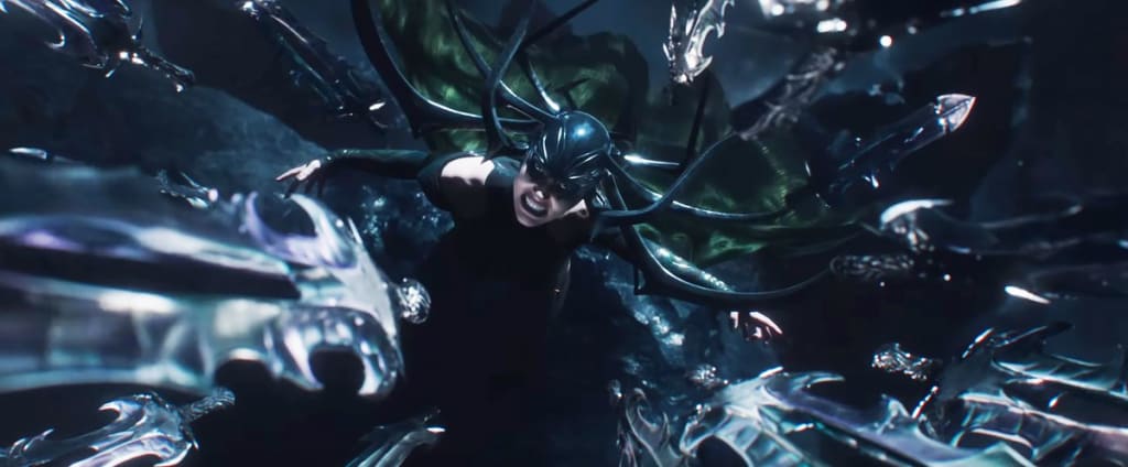 We've known for a while that Cate Blanchett's Hela will be the main villain of Thor Ragnarok and that the Goddess of Death will mount an assault on Asgard. The first trailer showed a rather ominous shot of Hela shattering Mjolnir in her bare hands; clearly, she's not one to be trifled with.