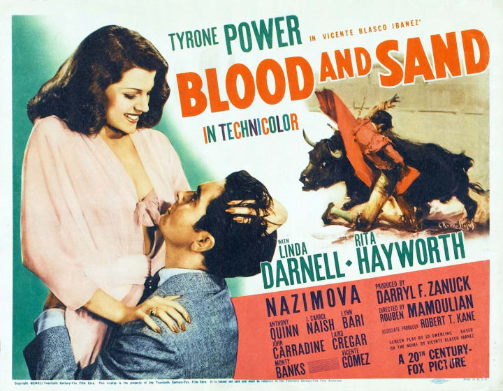 In 1941, the romantic drama “Blood and Sand” was directed by Rouben Mamoulian. It starred Rita Hayworth and Tyrone Power. The film was based on the 1908 Spanish novel of the same name by Vicente Blasco Ibáñez. The cast included Tyrone Power, Anthony Quinn, John Carradine, and George Reeves.