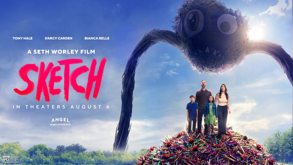 Angel Studios' Sketch is a heartwarming and slightly dark movie. It is not outstanding but it tackles the topic of grief in a genuine and engaging way. However, if you are looking for a typical kids movie to take your kids, this is not one of those films. I would advise the audience if they have kids younger than 8 years old to wait fo it to stream as watching in a theater can be a little too much for them. This film is really aimed for kids 8 and older and adults due to its heavy thematic topic and some curse words. Its an interesting film with an interesting aesthetic. I enjoyed it.