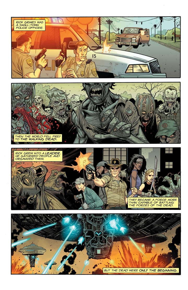 There are four stories in this issue and each one is unique to a franchise from Skybound and each one is as different from the next as you can get. But considering how impressive each of these vignettes are with such a commanding introduction or a complete story as the case may be makes for such an interesting mixture. What I actually love about this is that we see new never before seen stories based on familiar franchises and to start off with Rick Grimes and seeing him in a way we’ve never seen before well that’s just craziness that shouldn’t work but somehow does. Then my favourite Skybound book, Manifest Destiny, and that story well I certainly wasn’t expecting to see this and ya know what, that we’re seeing it here where anything can and will happen is spectacular.
