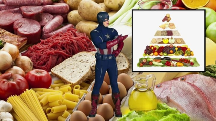 The next, "Food for Thought" details the importance of a balanced diet. It doesn't just take a secret government Super-Soldier serum (try saying that quickly) to be healthy and have strong bones, a proper diet can go a long way towards this. He then points out the food pyramid to help with arranging your healthy diet.