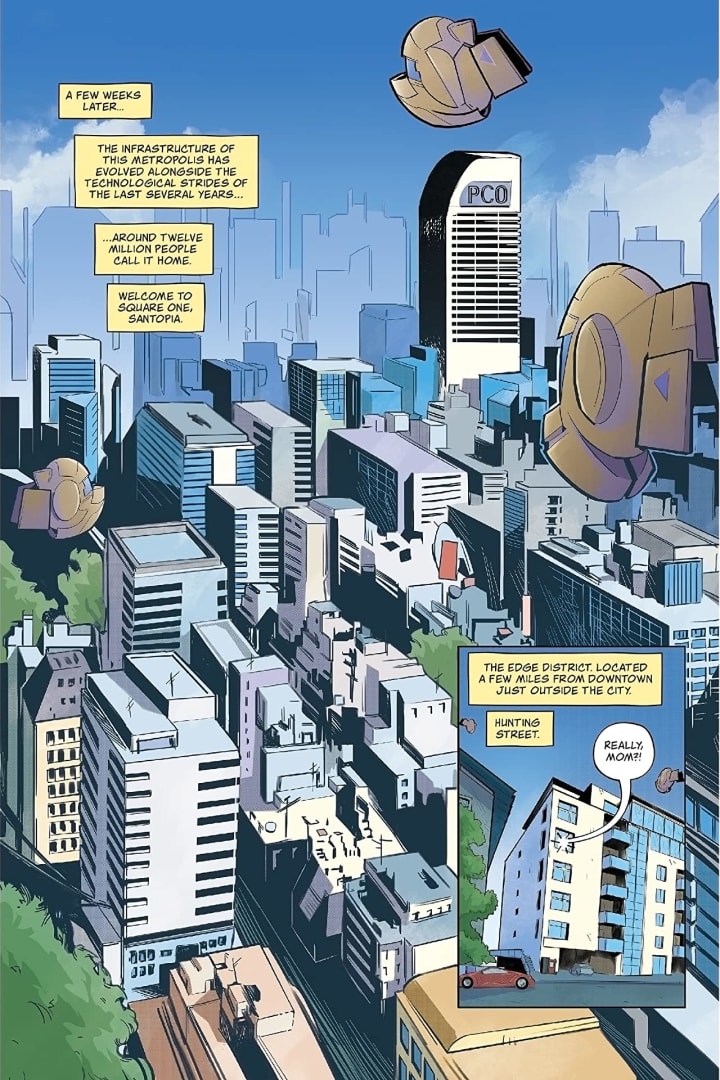 The awesome first issue of the most anticipated comic book series in the indie scene! Santopia is run by a mega corporation called the Plant Corp. They provide the country with a renewable energy named Magna Core. On a morning like any other, on their way to high school, six teens in Square One City accidentally get exposed to a fraction of that particular energy source…