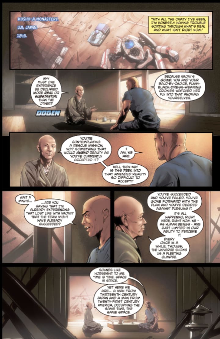 Things here start to really amp up story wise. Actually I’m really surprised and impressed with the level of storytelling that we see within these pages. Without relying upon gimmicks or action sequences, what Rylend manages to convey here is a group of people with one goal and doing everything within their power to make that dream a reality. This is a very story driven issue and I for one think we don’t get near enough of these issues. There is so much happening within these pages and from different folks with different angles and yet all of it works towards the same common goal. The ideas proposed are intriguing and it certainly does a great job in engaging the reader and taking them off the page into their own mind, imagination and creativity-not to mention a fair bit of googling as well.