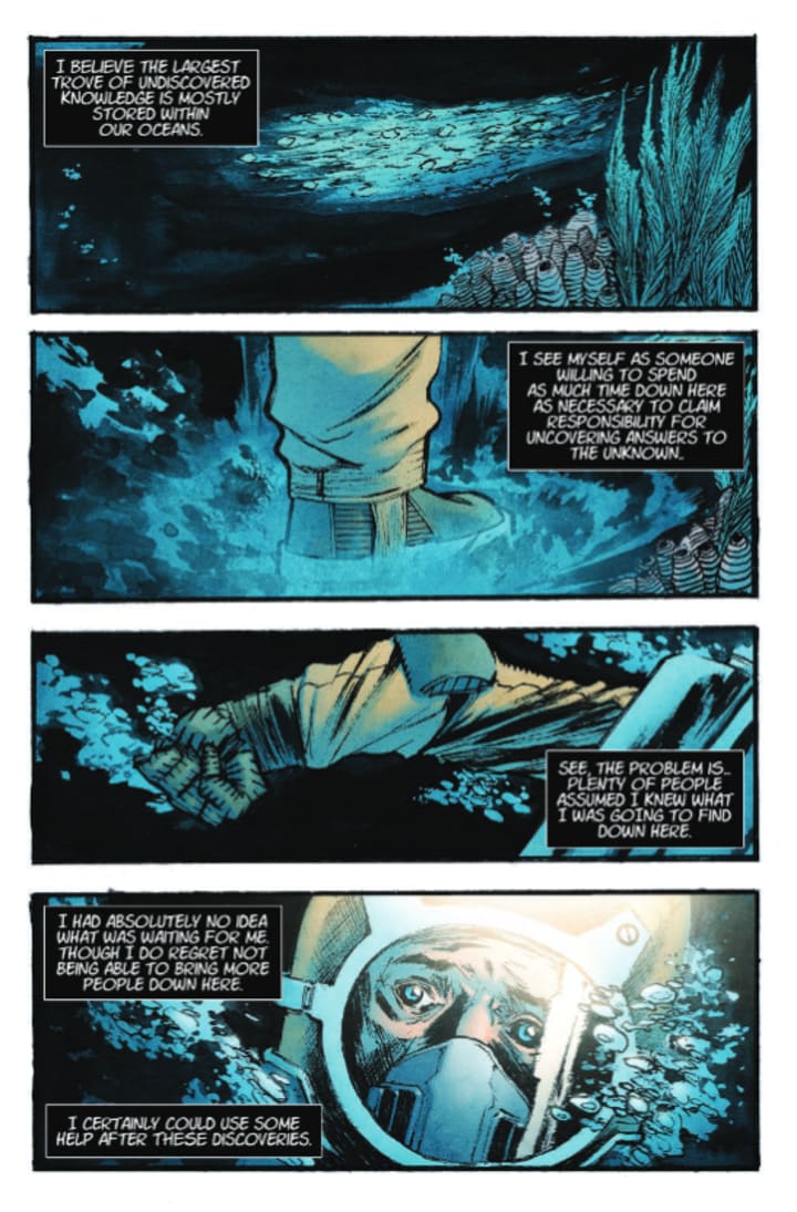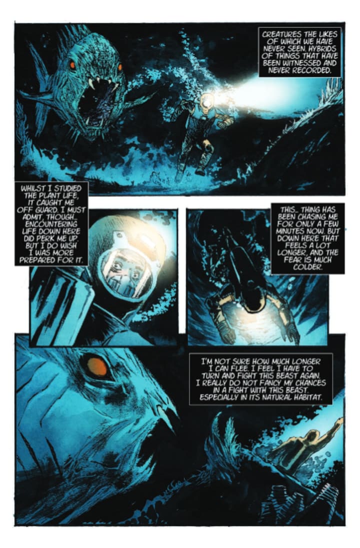 I have to say I like the blend of science fiction, straight up horror and the different locations that these stories take place in are what contributes to how enjoyable the flow of the book is. That they are so different and set in such different locations feels not only strategic but extremely well thought out to deliver such a varied and unique set of circumstances that showcase the talent of these creators.