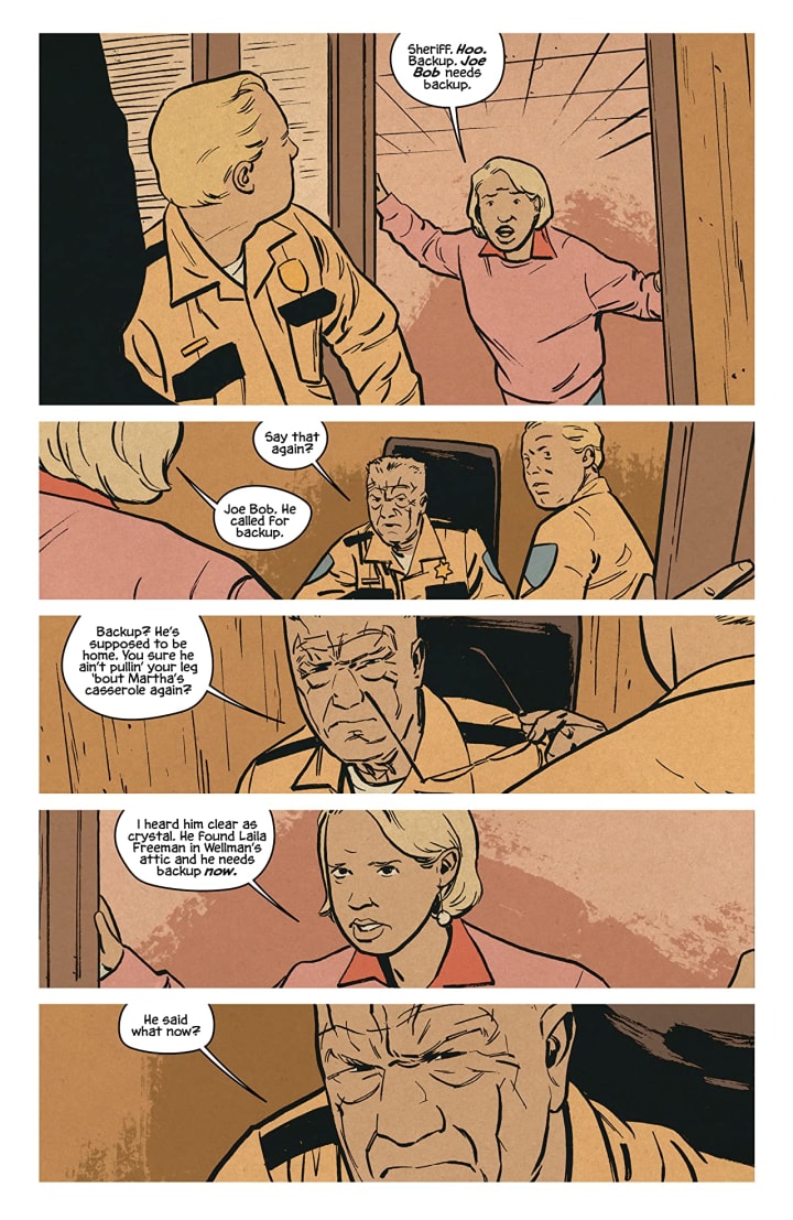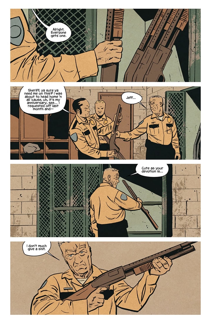 Not going to lie, this issue hit me square in the feels and I nearly lost it when I was reading the letter in the back of the book. I did get emotional and that I did should tell you the power that this story has on its readers’. This little series is one of those that really sneaks up on you with how strong the writing and the feelings behind it are. Before you know it you are incredibly invested and engaged in the story and that this is a flashback to when Joe Bob was a young man and new on the force really does set the stage for more stories like this. After all if you pay attention to what’s being said here “After that night things weren’t quite the same” and that’s an opening if I’ve ever seen one. So here’s hoping we see more stories about the town that weren’t right after that night because the way this continues to bring us the fuller picture of Joe Bob has been spectacularly well rendered. Then there’s Ana who I wouldn’t mind seeing come across something that isn’t right either and let’s see how she reacts after having heard this story.