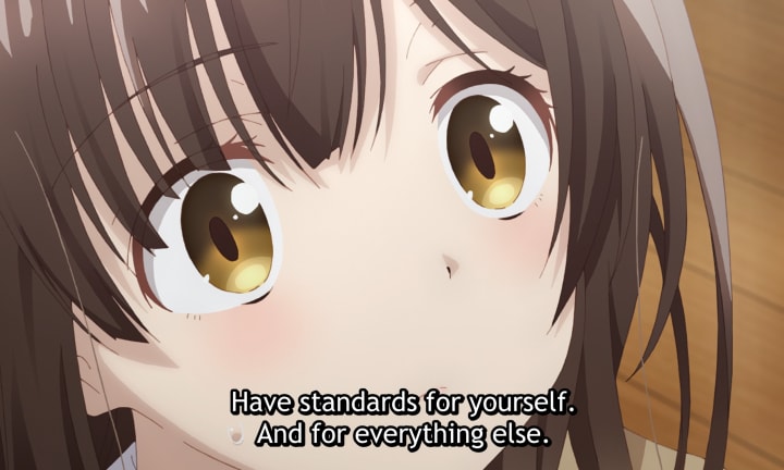 Higehiro's first most explicit lesson for not only young women, but the audience, in general, is to have standards for themselves. Don't lower your expectations no matter how shitty they are in your immediate environment. Never settle. Know your worth.