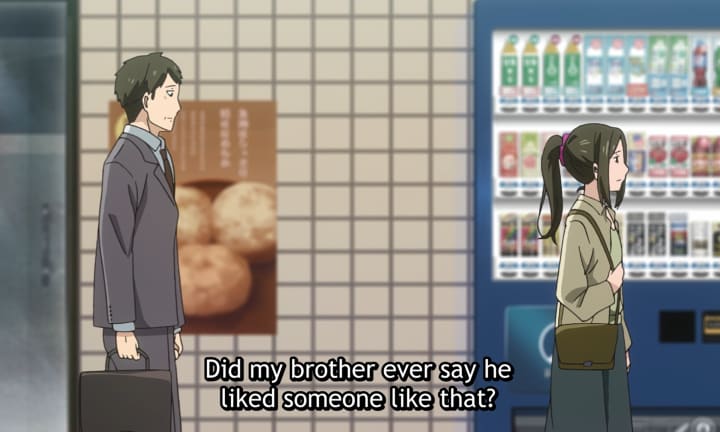 What I absolutely adored about Sayu and Asami was their juxtaposition in personalities. A shy dark-haired girl with a troubled past and a bright affluent girl with an independent, boisterous mind. I feel like the character of Asami is severely underrated. Her most poignant trait would have to be her incredibly high emotional quotient (EQ, similar to IQ but basically the 'social' measurement). On Sayu's first day of work, it seems that Asami can easily detect Sayu's reserve, her vulnerability. In fear that she might be in danger, she makes sure that Sayu introduces her to Yoshida. Some may consider it meddling, but in this contemporary age of addressing the rape culture that we live in, it is important for others, of all genders, to watch out for each other. Upon confirming that Yoshida is not a creep, Asami expresses a subtle relief, knowing that her colleague of the exact same age in complicated circumstances is safe. Again, in this dynamic, there is no jealousy or competitiveness.