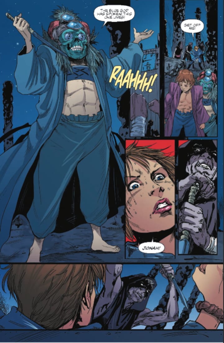 Jonnie sees who the boy king is for the first time and it raises more questions than there are answers. Still it’s a great wrinkle in everything we’ve been led to believe so far. There are a few avenues that have opened up over the course of this series thus far but none have prepared us for what it is we are seeing happen here. I almost feel we were cheated a bit by this issue it’s weird that’s for sure and I’m not sure the direction is one I would have taken but I’m willing to see how this plays out next issue before actually passing judgement. There is at least one person who seemed to either be prepared for this or simply didn’t care and attacked relentlessly when they should have held off. This is going to change how we see things so perhaps it isn’t as crazy as it appears.
