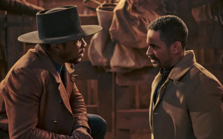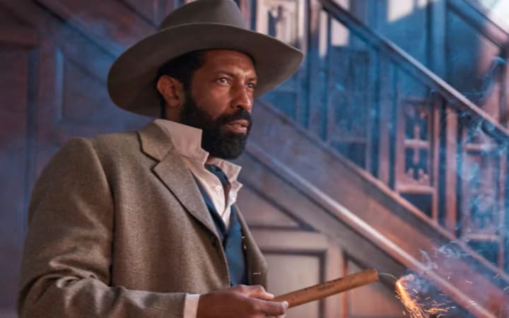 Nat Love fights against a band of villains: Monroe Grimes played by Damon Wayans Jr., Wiley Escoe played by comedian Deon Cole (if you haven’t heard his comedic DM shout-outs on Instagram, I highly recommend a listen); and Bass Reeves played by Delroy Lindo (the glorious father in Spike Lee’s film Crooklyn), who ends up siding with Nat.