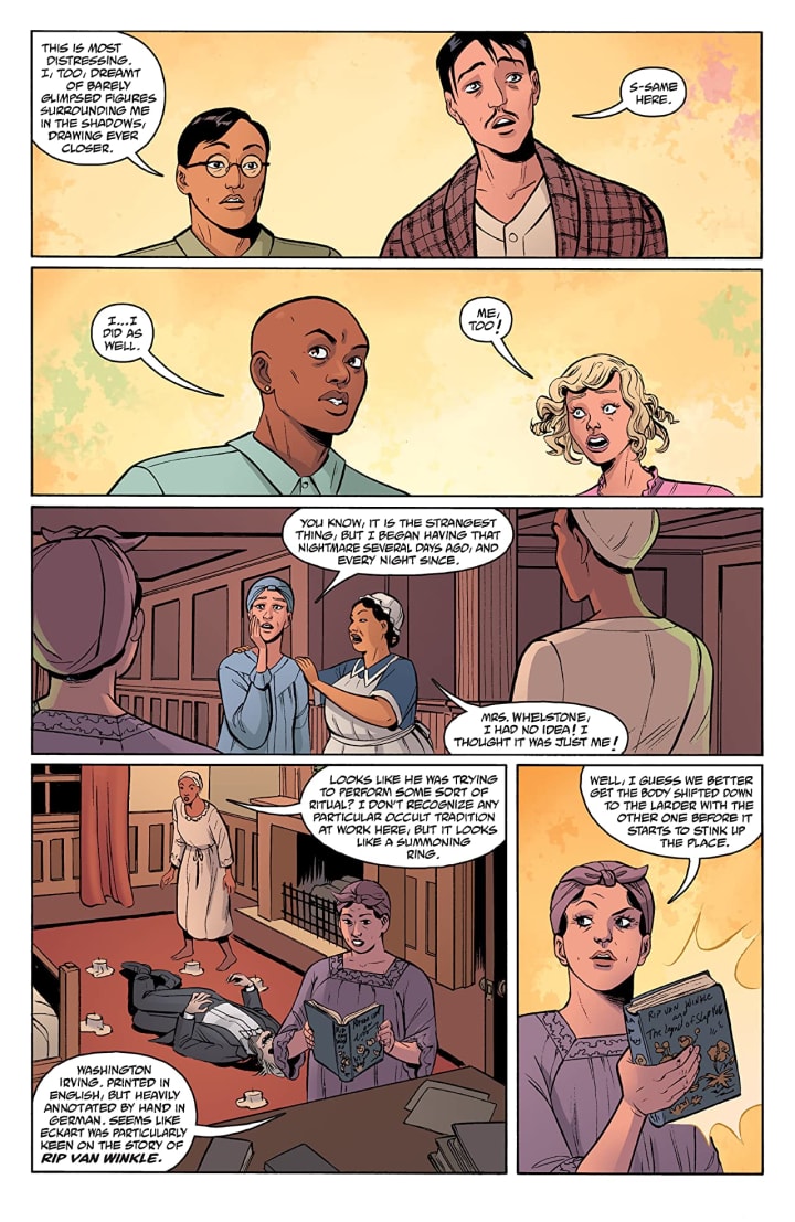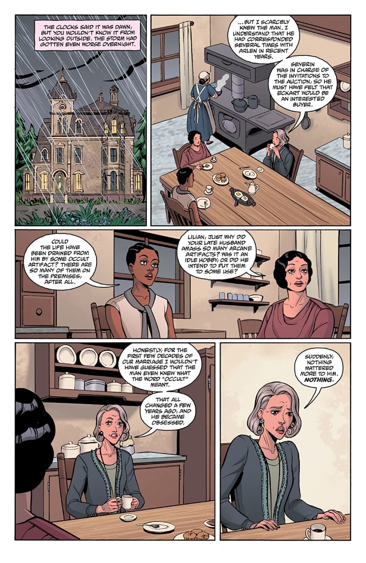 I am a huge fan of the way that this is being told. The story & plot development that we see through how the sequence of events unfold as well as how the reader learns information is presented exquisitely. The character development is phenomenal and that’s thanks to how we see the dialogue, the character interaction and how they act and react to the situations and circumstances that they encounter. Don’t ever discount “coffee talk” in the kitchen when you’ve got a group of women together because that is going to be some of the most interesting conversations you are going to see. The pacing is superb and as it takes us through the pages revealing more and more of the story we find ourselves drawn into this in some sensational ways.