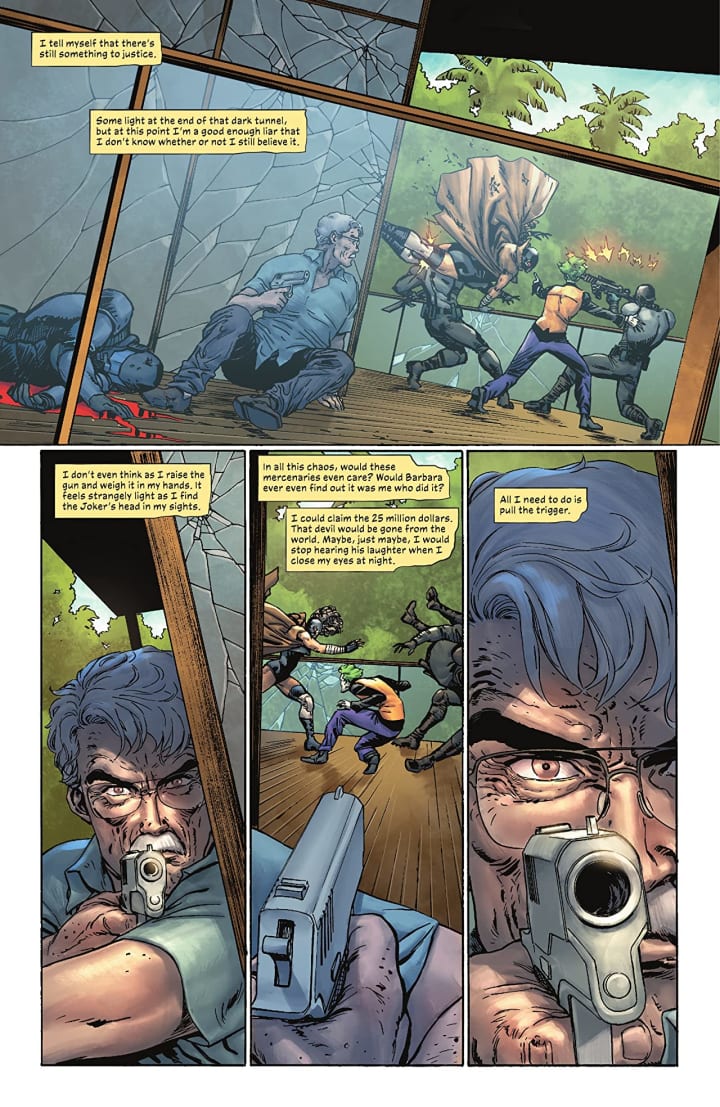 Main story: It’s murder and mayhem in the jungles of South America with pits The Joker pitted against everyone hunting him! He’s prepared for this massacre in a way that only the Clown Prince of Crime can…but what secret does he whisper to Jim Gordon as the bullets fly?! What is the TRUE mystery?!