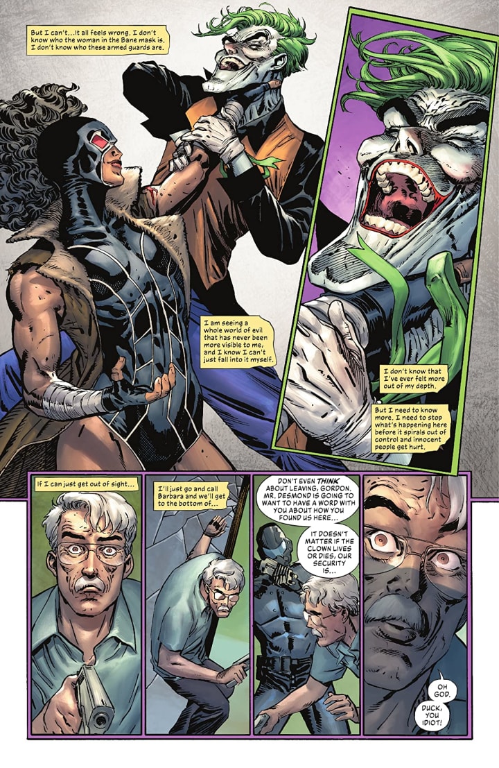 How we see this being structured and how the layers within the story continue to grow, evolve and strengthen while new ones emerge is stunning. There are bits in this that we see that work to enhance the main arc and then there are others that just add some incredible depth and complexity to what we see. Joker’s insistence of his innocence plays into the larger picture but what we see with Barbara terrifies me beyond comprehension. How everything works together to create the story’s ebb & flow as well as how it moves the story forward is achieved to perfection.