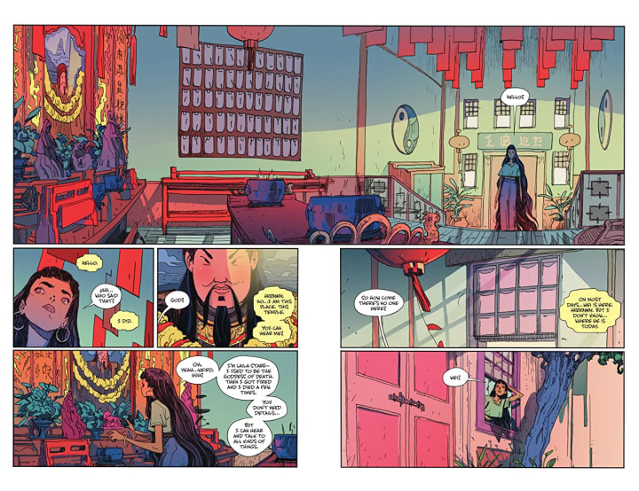 One of the aspects of this that I appreciate is that it introduces the western world to gods and goddesses of the far east. Here in the United States we aren’t as exposed to these as we should be and I love seeing the goddess of death being forced to live as a mortal as she comes to grips with losing her godhood takes the story to a whole new heights. With some wonderful depth to the writing and characterisation with some absolutely charming interiors we’re transported to a whole new world.