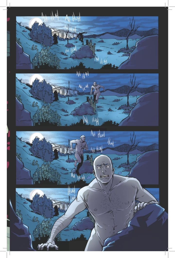 The interiors here are an unexpected treat. Right away we see through the opening how strong the linework is and how with the varying weights and techniques that create this detail work is astounding. The opening also has several integral parts in what we see though I wish the junk hadn’t been blacked out, in this day and age a penis shouldn’t be a big deal, unless we’re in the bedroom then it should be a big deal. The work we see is so good, its so strong and the faces, facial expressions and body language is gorgeous as it furthers our opinion of these characters. The composition within the panels including how backgrounds are utilised bring out some great depth perception, sense of scale and the overall sense of size and scope of the story is laid out perfectly. The colour work is actually dynamic as it all has this muted aspect to what we see. So the colours and the various hues and tones within them being utilised to create the shading, highlights and shadow work are so subtle that they become a huge focal point throughout.