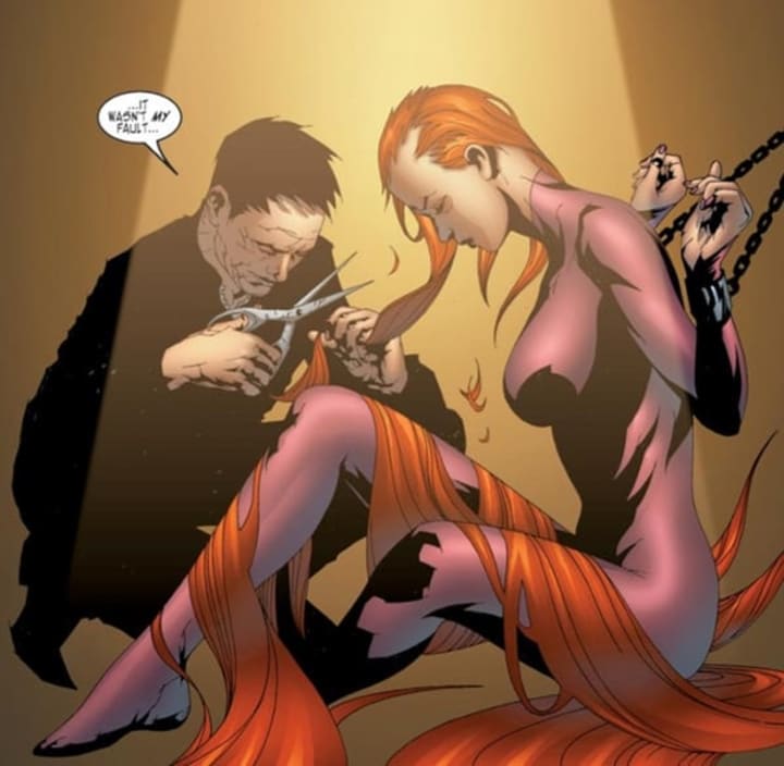 For Medusa, this act of violation redefines her as a person. Her sister, Crystal, finds her huddled on the ground after this assault, her fingers playing through the shorn strands of hair and grieving that which has been taken from her: her hair, once a literal center for her powers as well as a symbol of her power as a woman. Crystal sends Medusa to Earth, and there it takes time for the Queen of Attilan to get back on her feet.