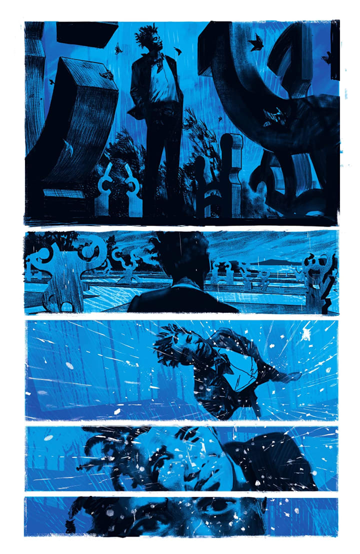 The interiors here are mind blowingly and mindbogglingly brilliant to see. The linework is truly exquisite and how we see the varying weights and techniques being utilised to create this level & quality of detail within the work that we see is extraordinary. That we see such use of backgrounds so prevalent within the book and how they enhance and expand the moments are brilliantly rendered. The utilisation of the page layouts and how we see the angles and perspective in the panels shows this masterful eye for storytelling. The various hues and tones within the colours being utilised to create the shading, highlights and shadow work shows an excellent understanding of how colour works. The paintings within the story are phenomenally well rendered as well and they really add something special to the moments we see.