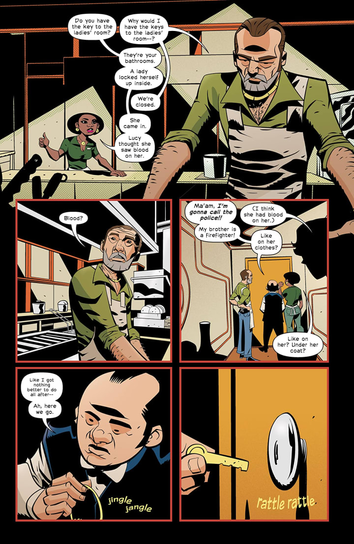 I really like the artwork for this one. The linework is great and the little details such as Joe’s nose is extremely distinctive and makes him extremely recognisable. The linework really is clean, crisp an strong and the attention to detail. The utilisation of the page layouts and how we see the angles and perspective in the panels show a marvellous eye for storytelling. The colour work too is extremely well rendered.