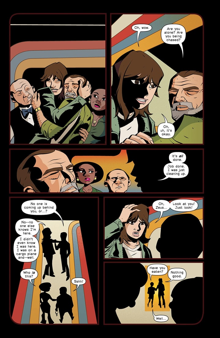 Ah a lovers quarrel leads to a little separation during the moon landing. This is the second story. While we never really learn what the spat is about it doesn’t really matter because it is what it is. I do like how we see both these arcs playing out simultaneously as Joe and Nicky are half a world away from one another during such a monumental event happens. I think of the aspects of this team is no one else on the team gives a damn they love each other, they are mishpucha after all, no they do their darnedest instead to get them to patch things up. It really is a heartwarming story and one that showcases what’s possible when you just love your friends and who they love doesn’t matter.