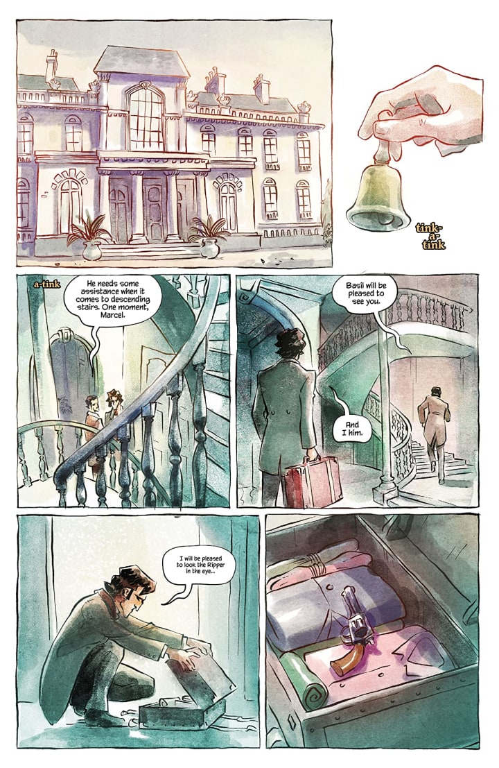 The story & plot development that we see through how the sequence of events unfold as well as how the reader learns information is presented exceptionally well. I mean damn and for that to go into such synchronicity with the character development that we see is astonishingly well achieved. The dialogue between these three men with the focus on Marcel and Basil has been so extraordinary. The sheer amount of characterisation as the two men go back and forth each firm in their beliefs is an absolute delight to see unfold. The pacing here is superb and as it takes us through the pages revealing more and more of the story it really draws you in on such an intellectual level.
