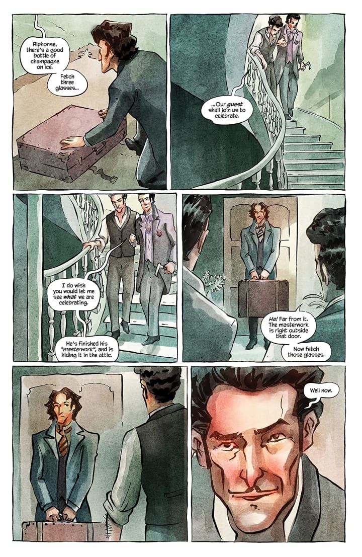 This is a surprisingly complex, interesting and creepy story where Alphonse has been lured away and the man who, secretly, loves him more than life itself was left behind devastated after almost being murdered. I like how we pick things up this issue after Alphonse has retrieved Marcel and brought him to their home in Paris. This was so interesting right off the bat and the murders that took place were literally the stuff of nightmares and while they’ve eased, unfortunately and yes I know I’m sick, the story itself seems to ramp up on simply the strength of the story & plot alone. Dan is writing a masterpiece here and this is no exaggeration because this is the kind of storytelling that will stay with you for an extremely long time. There’s awe, wonder and disbelief that goes hand-in-hand with idea of death and destruction and that tightrope balance is astonishingly well balanced.