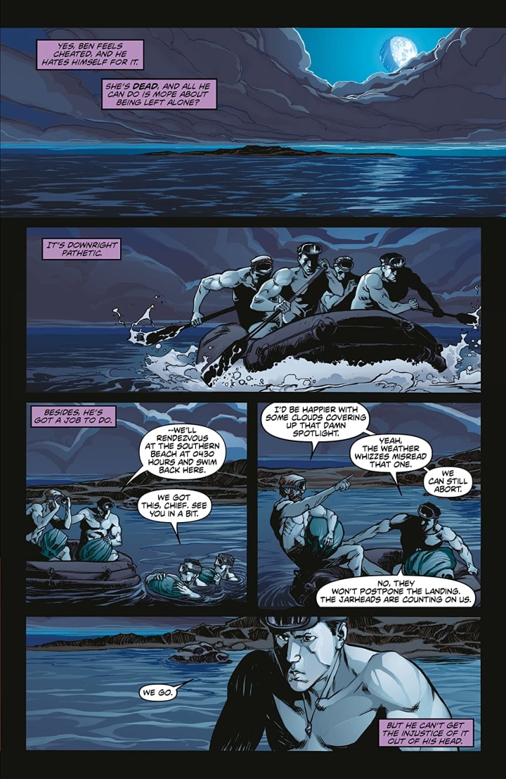 What a sensational first issue this is. We are introduced to these characters in such a wondrous way as we see Ben on his current mission and remembering the love of his life Katherine and the last time they were together. I really like this because we get that sense of how much they love one another and how much they mean to each other and what Ben believes to be true. What Christopher does here is amazing and in such a short period of time we see just how emotional these two can make the reader feel. Then to showcase what the Third and then Fourth Reich has created here is utterly amazing considering the location of the base and I have to say it is rather brilliantly done.