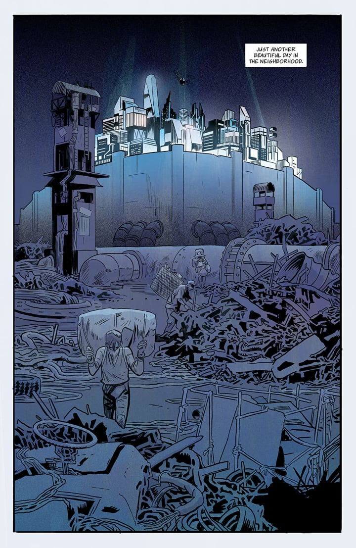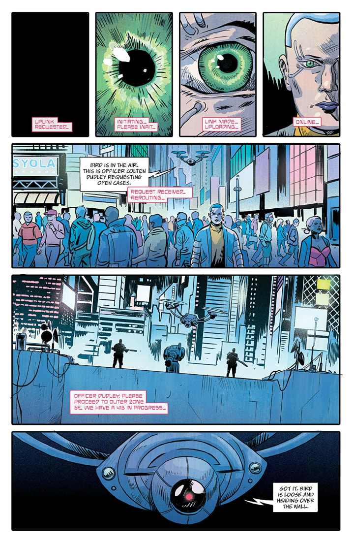 The interiors here are really very strong. The linework we see is clean, crisp and strong with its varying weights and techniques being utilised to create the detail work is fabulous. I love how we see the composition within the panels bringing us depth perception, a sense of scale and the overall sense of size and scope to the story. The utilisation of the page layouts and how we see the angles and perspective in the panels show a remarkable eye for storytelling. The colour work is interesting and well rendered. How we see the various hues and tones within the colours being utilised to create the shading, highlights and shadow work is well done.